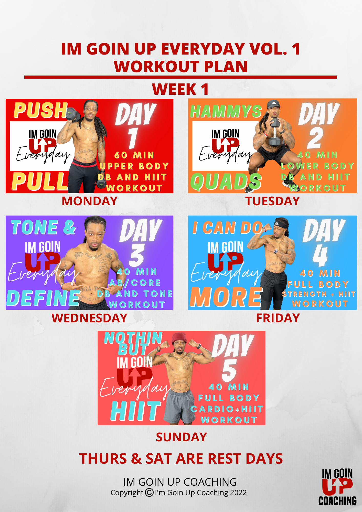 IM GOIN UP EVERYDAY COMPLETE 10 WEEK FITNESS, NUTRITION & LIFESTYLE PROGRAM w/ Training Tips, Nutrition Guide, Weekly Schedules, and MOTIVATION